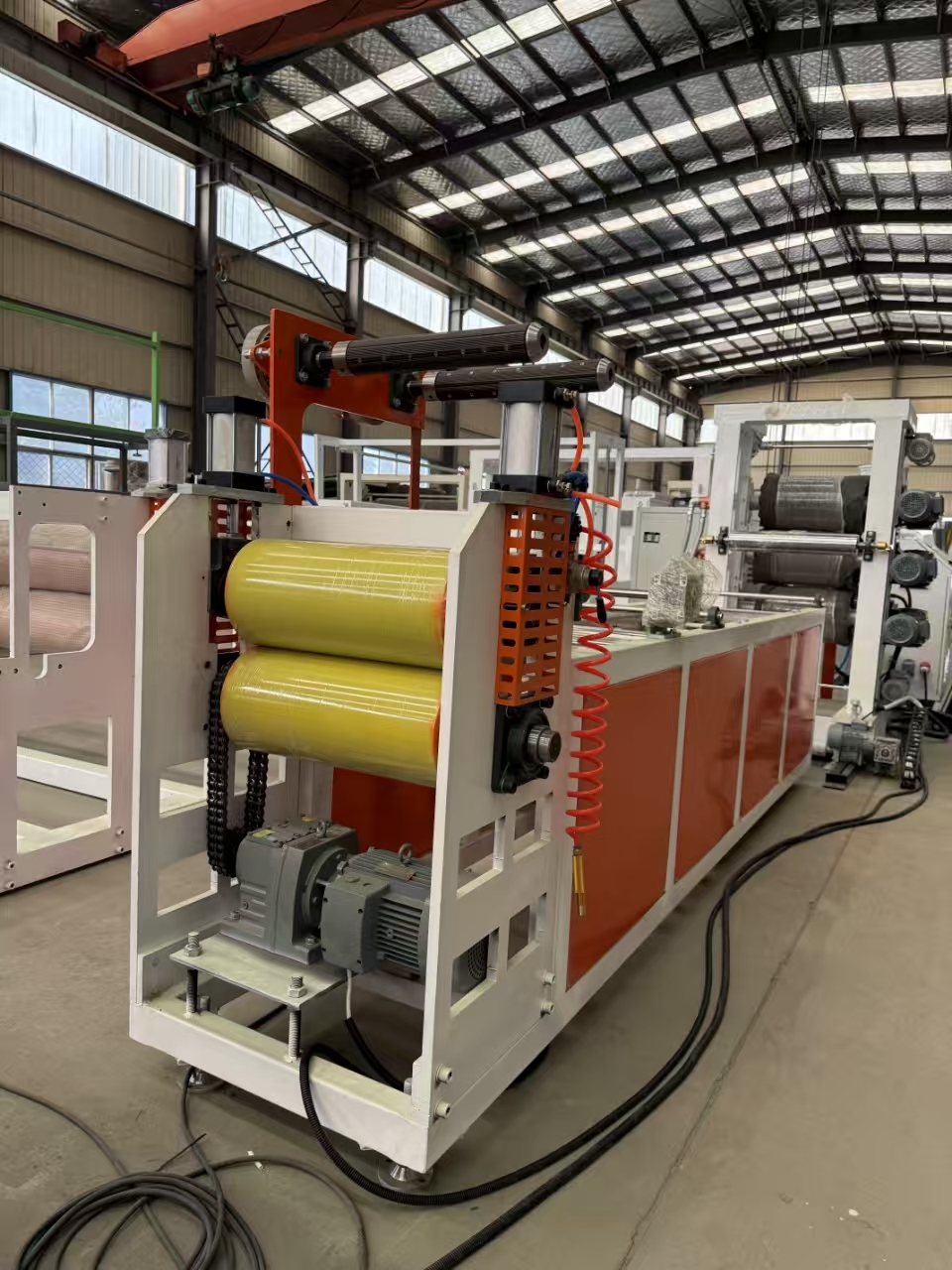 Maşınımız TPU təbəqələrinin vahid qalınlığını və üstün aydınlığını təmin edən yüksək dəqiqlikli ekstruziya sistemi ilə təchiz edilmişdir. İnkişaf etmiş vida dizaynı və temperatur idarəetmə sistemi, minimal qüsurları olan yüksək keyfiyyətli təbəqə ilə nəticələnən TPU materialının optimal ərimə və qarışdırılmasına zəmanət verir.
