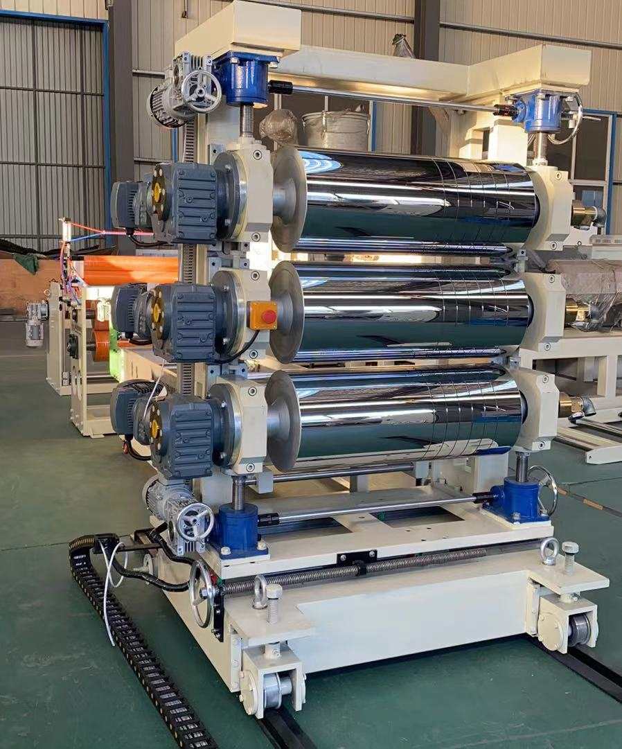 PVC şəffaf yumşaq qapı pərdələri üçün istehsal xətti: 200 ilə 600 millimetr və 0,8 ilə 3 millimetrdən ibarət olan pvc şəffaf plastik təbəqələr istehsal edə bilər. Avadanlıqlara SJ90 və ya SJ-120 tək vintli ekstruder, tənzimlənən T-formalı çevik ölmək, şaquli və ya 45 dərəcə meylli üç rulon temperaturu, geniş geniş tənzimlənən kəsilmiş kəsmə bıçağı, bir rezin rulon dartma maşını və ikili mövqedə genişləndirən şaft. İstehsal olunan təbəqələr parlaq bir səthə, yüksək şəffaflıq, yumşaqlıq, çatlaqlara, bir qoxuya, heç bir baloncuk və çevik, soyuqdəymə, aşınmaya davamlı, turşu-alkali davamlı və korroziyaya davamlıdır.