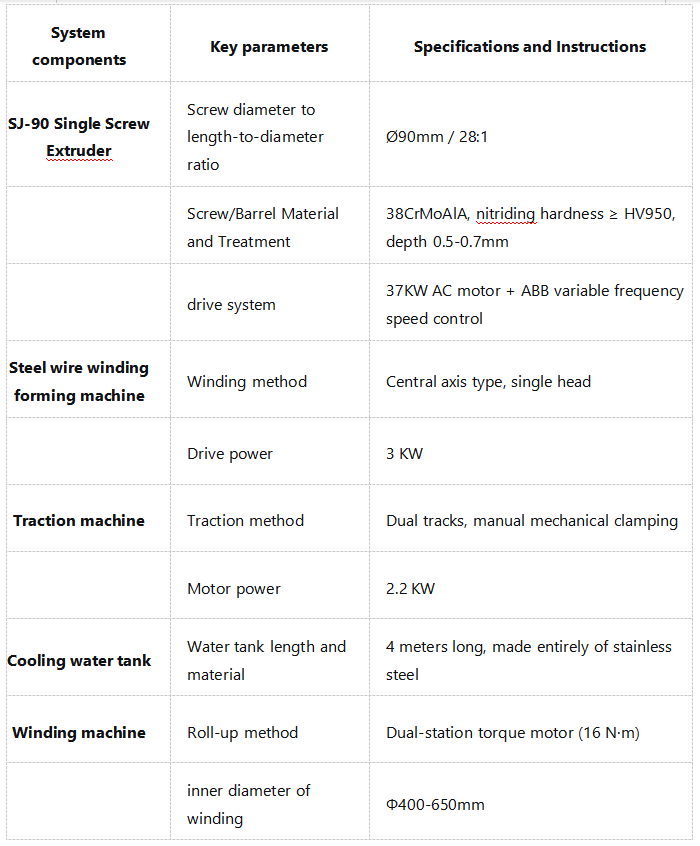 Güclü plastizasiya, sıx örtük: SJ-90 Extruder, vahid PVC plastizasiyasını təmin edən 28: 1 L / D nisbəti optimallaşdırılmış vida edir; Dəqiq bir örtük ölməklə birləşdirilmiş, heç bir ölü açı olmadan polad telin 360 ° mükəmməl bir örtüyünə, tel qırılması və havanın sızmasını aradan qaldırır.