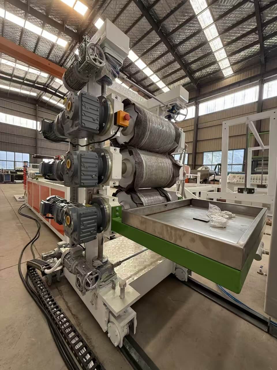 TPU / PE / PP / PP / PS-300 geniş təbəqə ekstruziya xətti, TPU, PE, PP və PS-nin qranulları və ya əzilmiş qarışıqları emal üçün nəzərdə tutulmuşdur. ** 60-100 kq / h ** istehsal gücü ilə Siemens və Omron kimi aparıcı markaların komponentləri daxildir. Bu, 0,8-3mm bir vərəq, üç rulonlu təqvim və dolama maşını, yüksək keyfiyyətli çıxışı təmin edir. Avadanlıqlar ciddi keyfiyyət standartlarına cavab verir və istismar və istismar rahatlığı üçün hərtərəfli texniki sənədlər daxildir.
